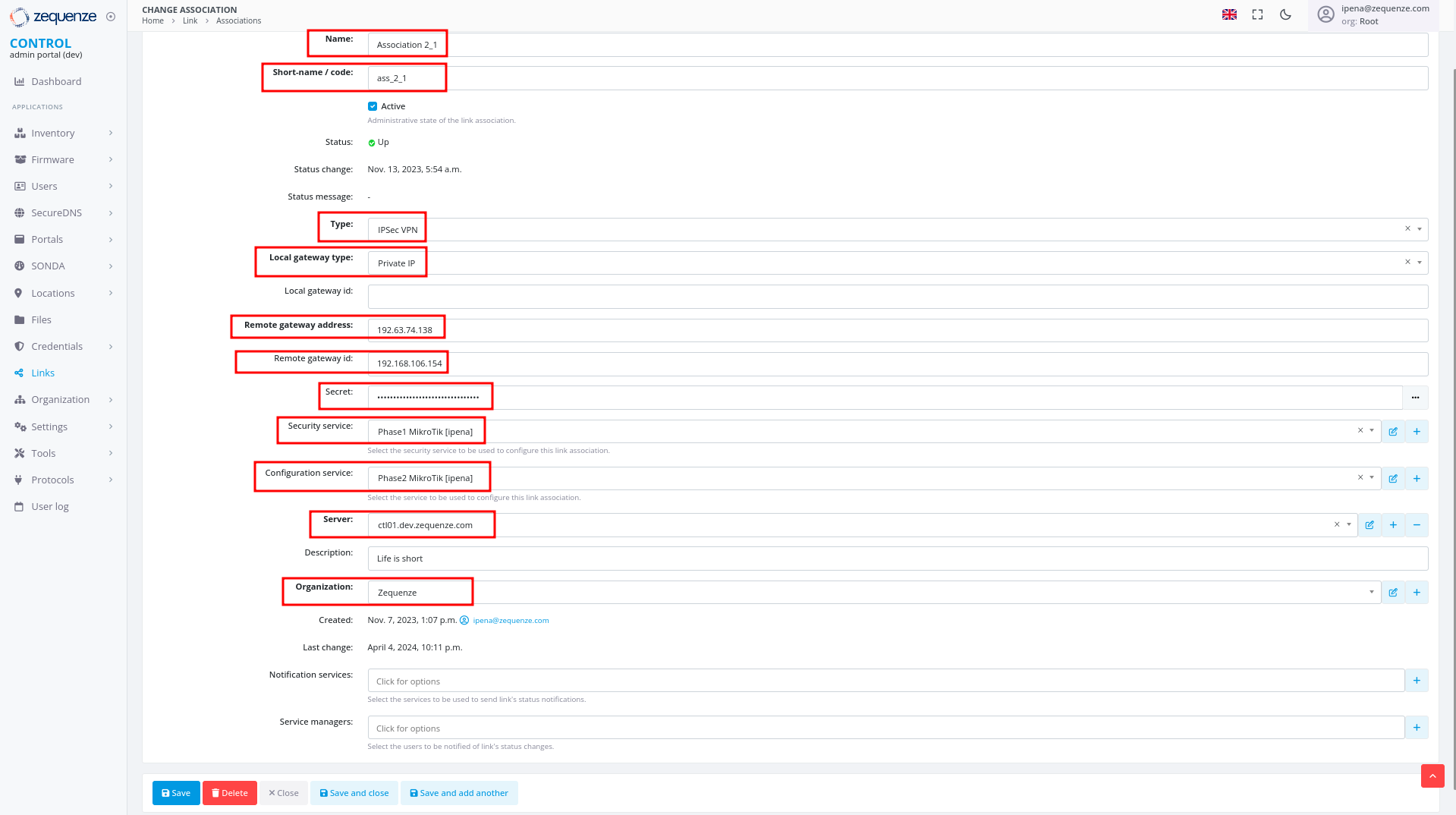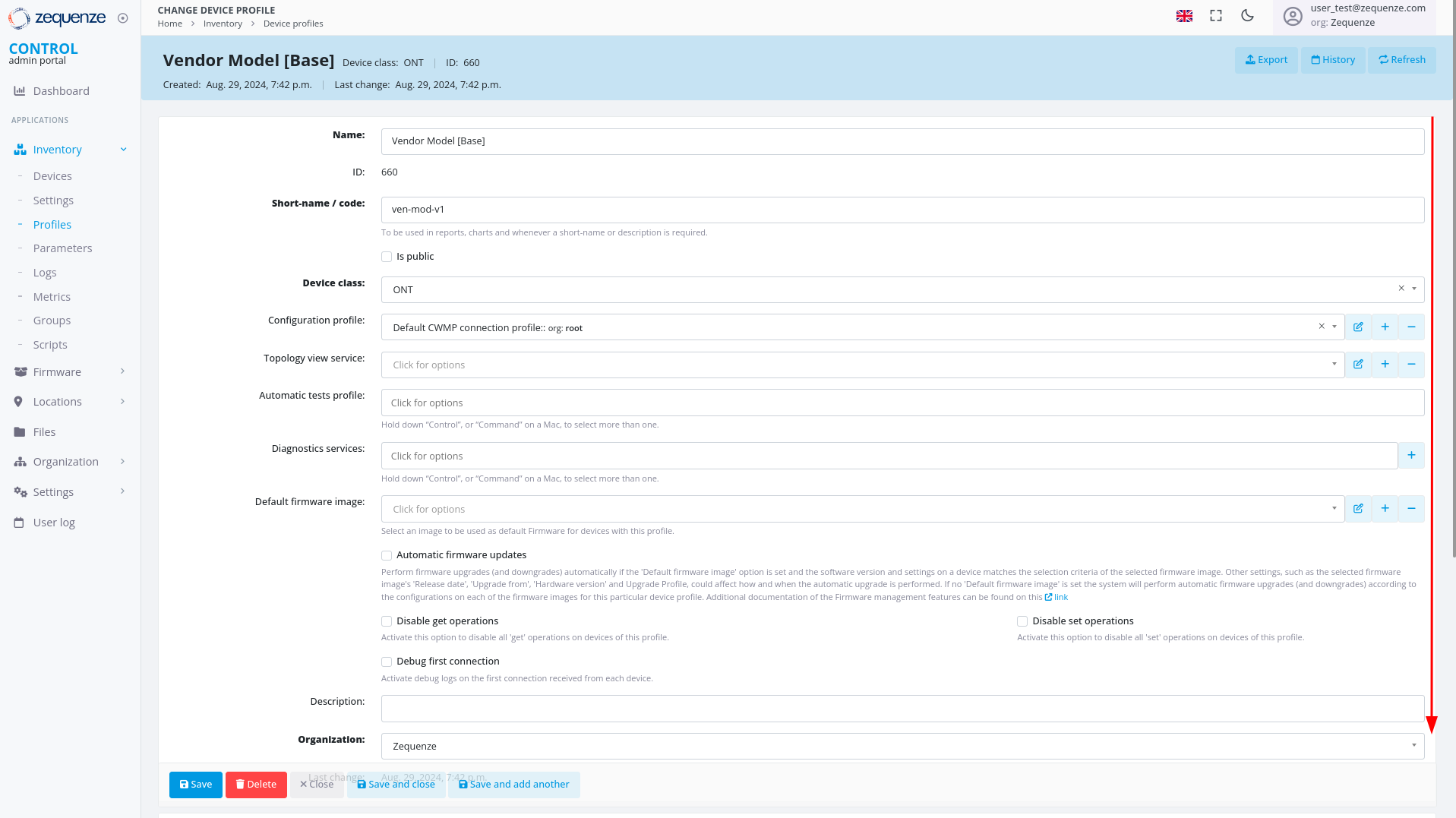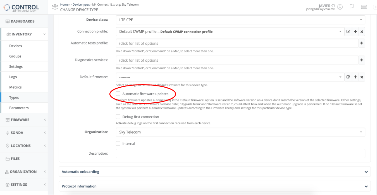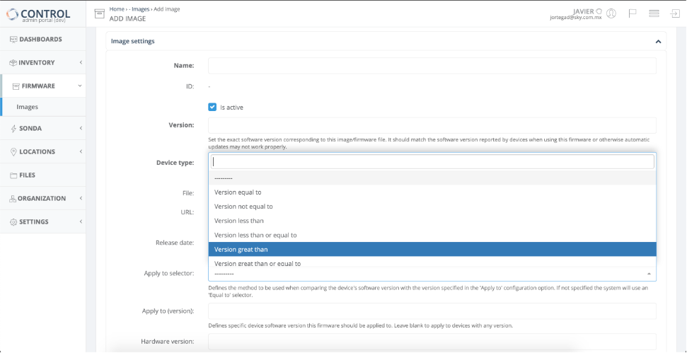 - **CONTROL admin portal (dev)** → **Firmware** → **Images** → Select specific image