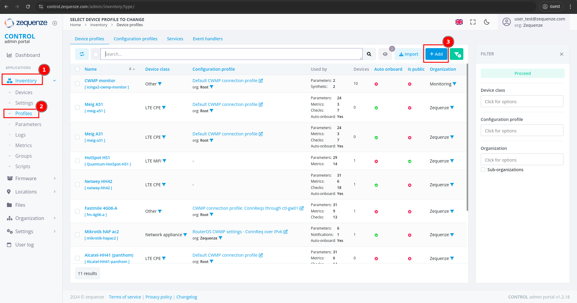 CONTROL provides comprehensive device management functionalities designed for service provider operations: