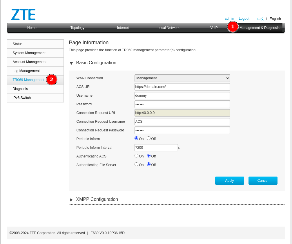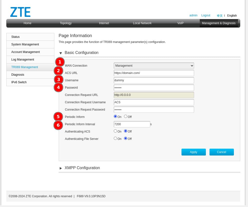 - [CPE WAN Management Protocol](https://cwmp-data-models.broadband-forum.org/) ([TR-069 Amendment 6](https://www.broadband-forum.org/technical/download/TR-069_Amendment-6.pdf))