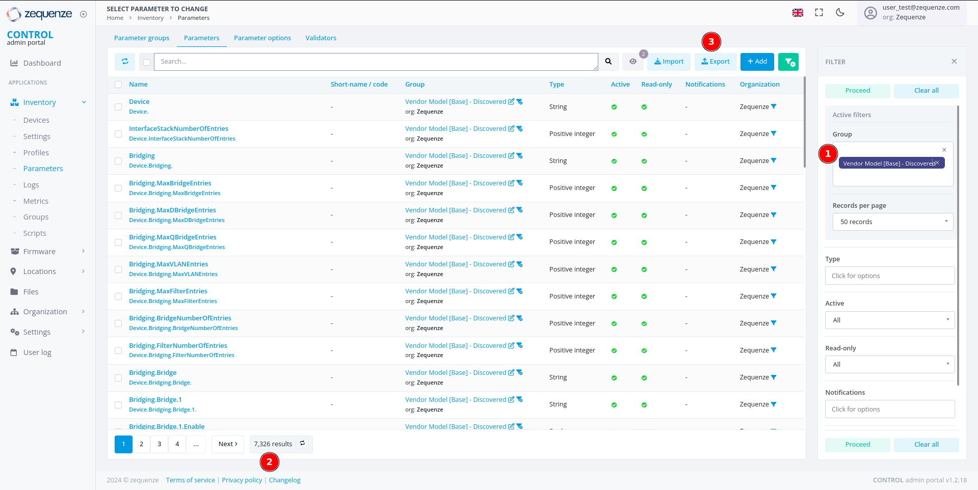 This guide explains how to locate, filter, and export parameter groups from the CONTROL portal. You'll learn to navigate to the Parameters section, apply filters to find specific groups, and export the data in your preferred format.