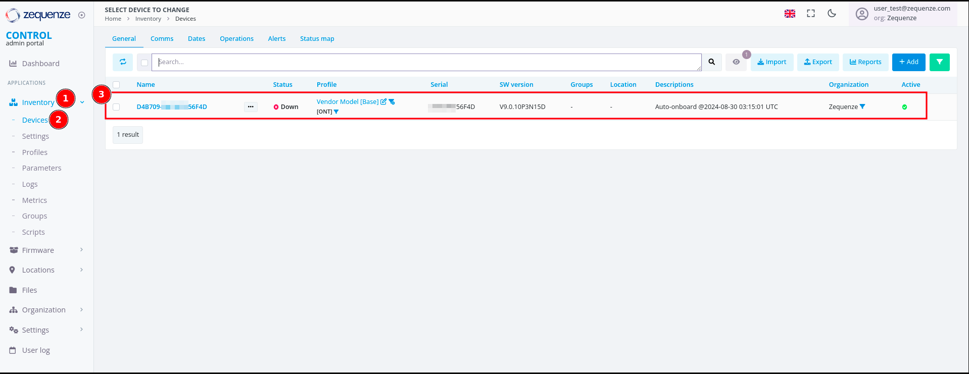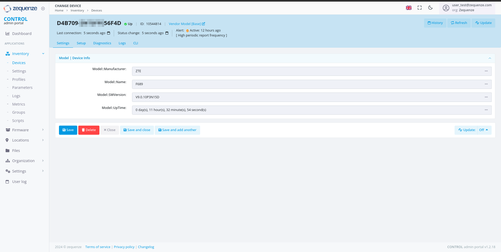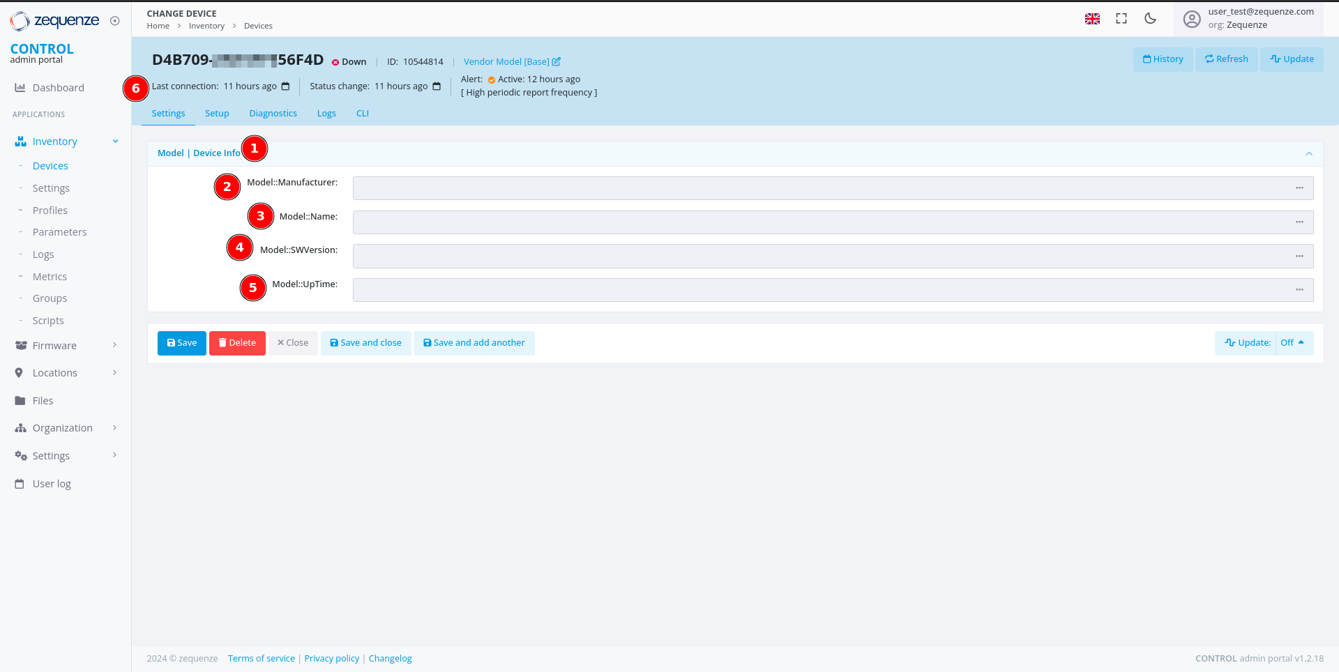 - The Last connection timestamp for this device in CONTROL