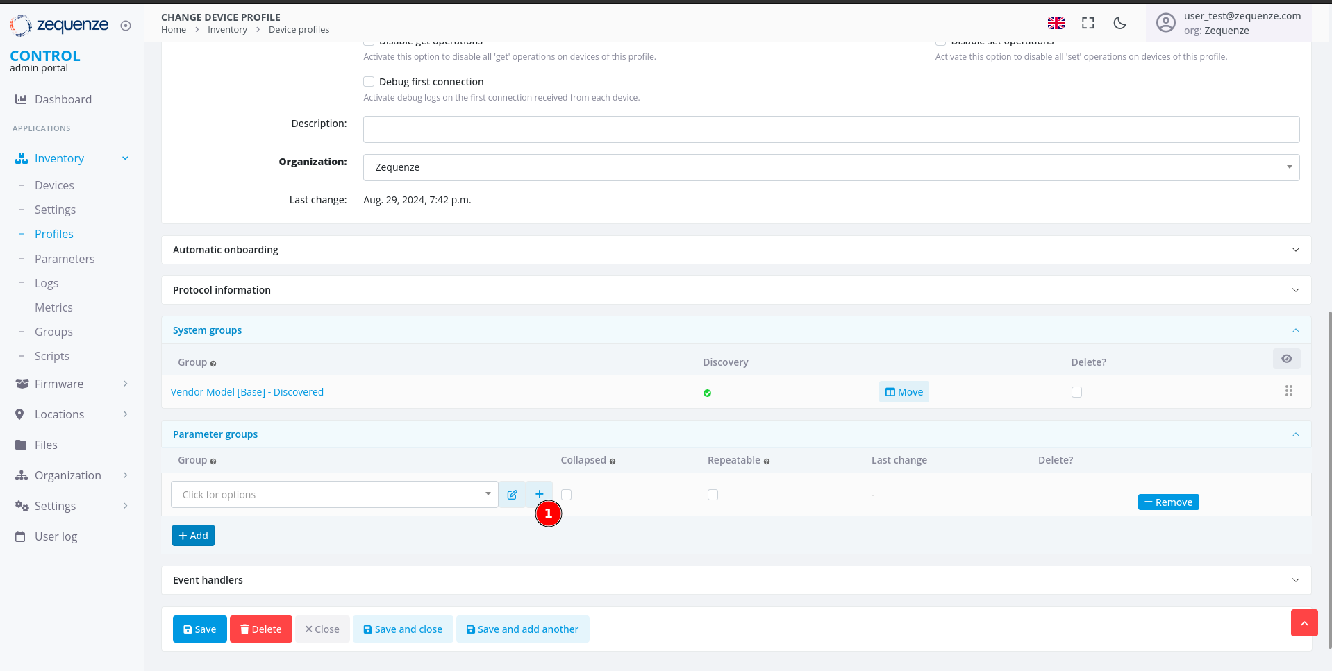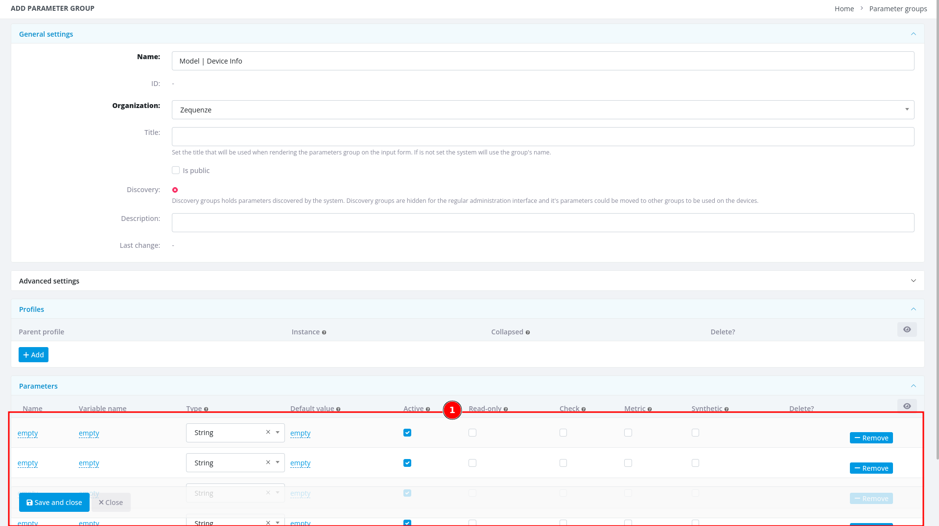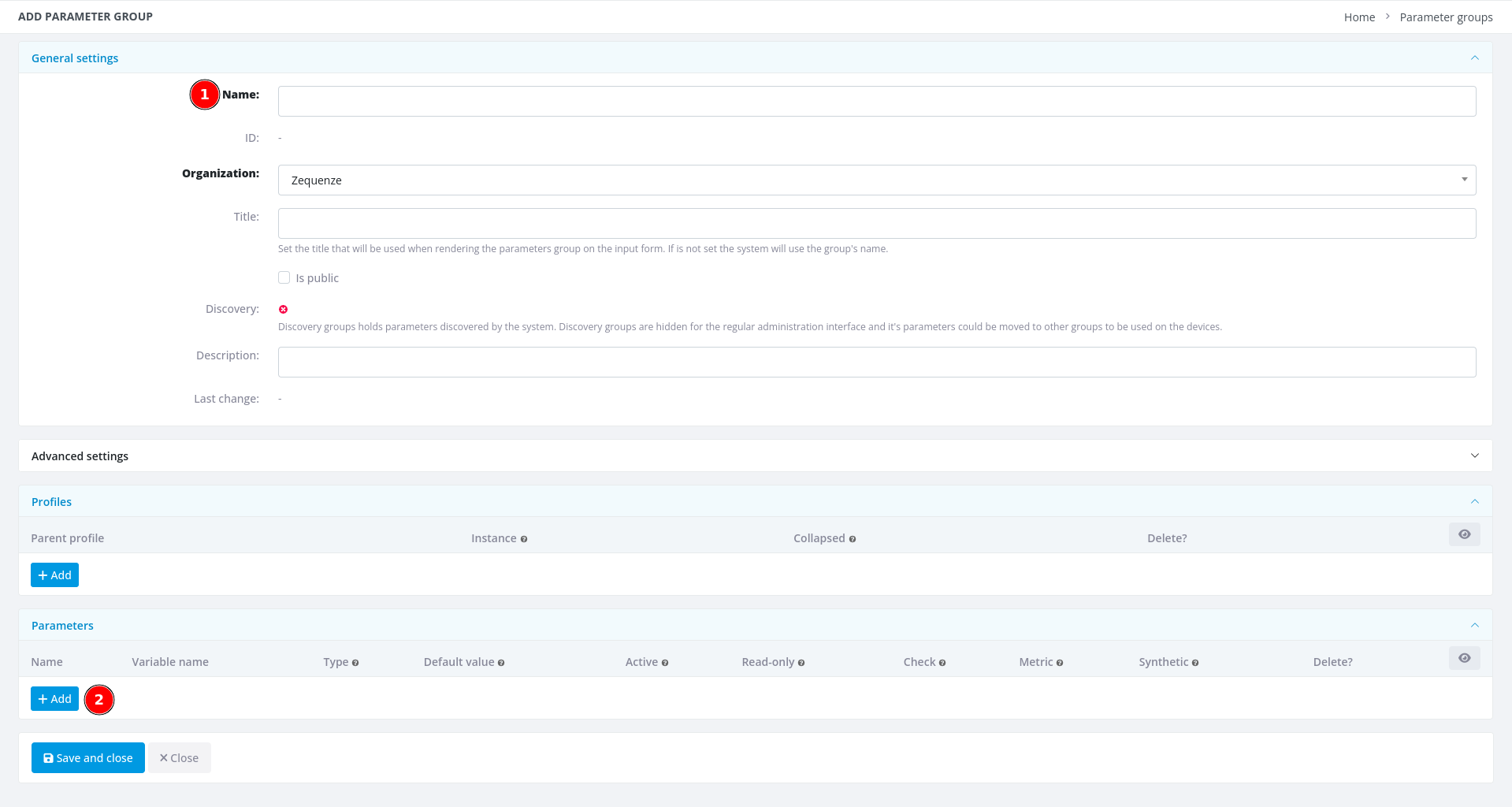 - Parameter groups - This section allows you to create and organize parameter groups