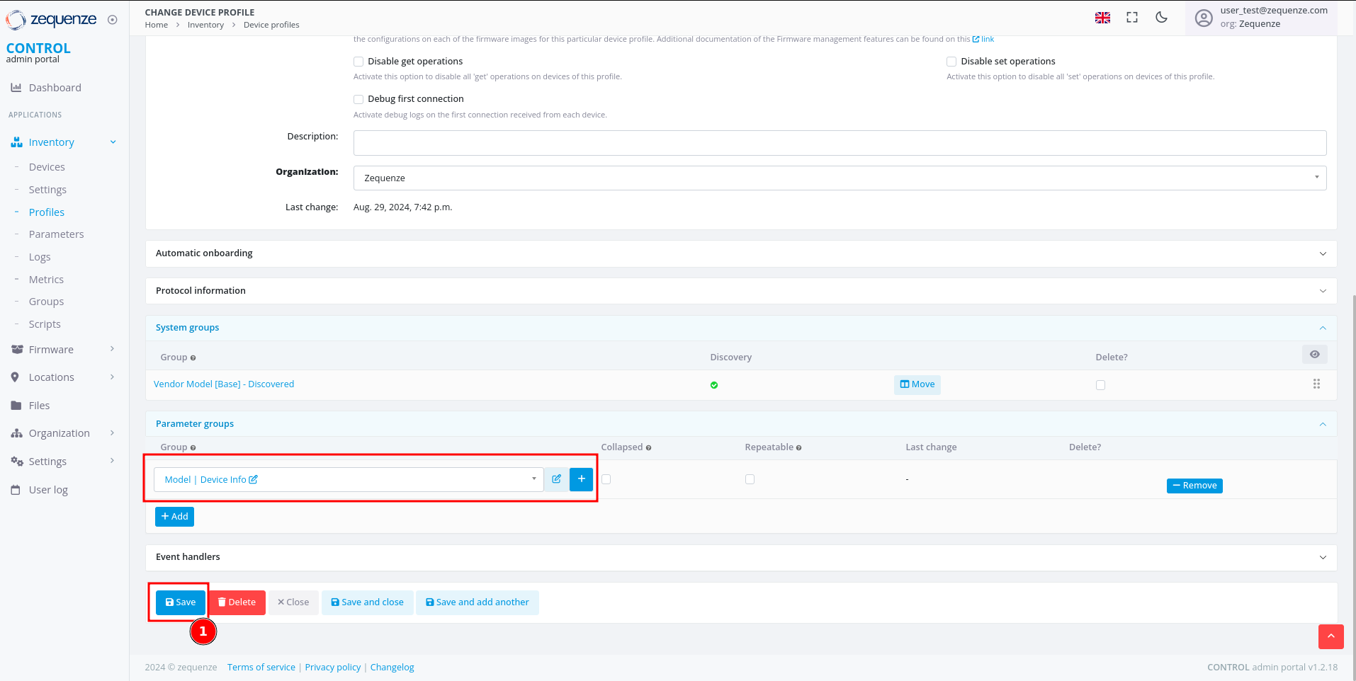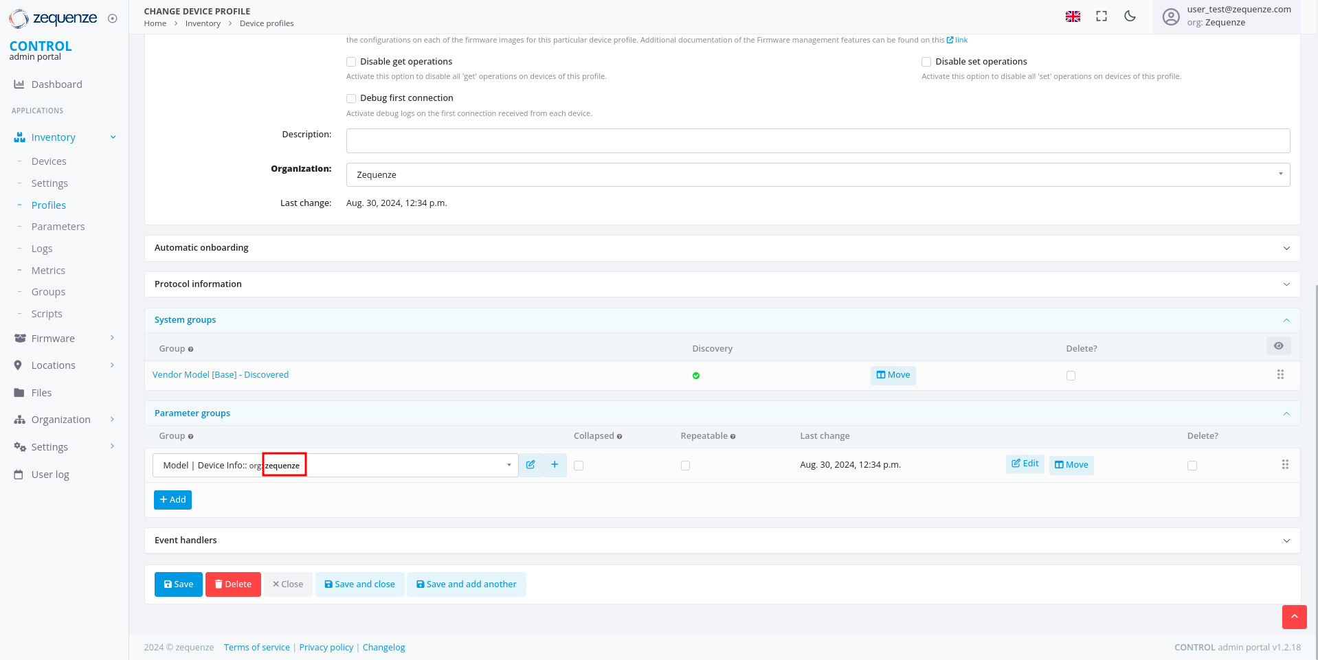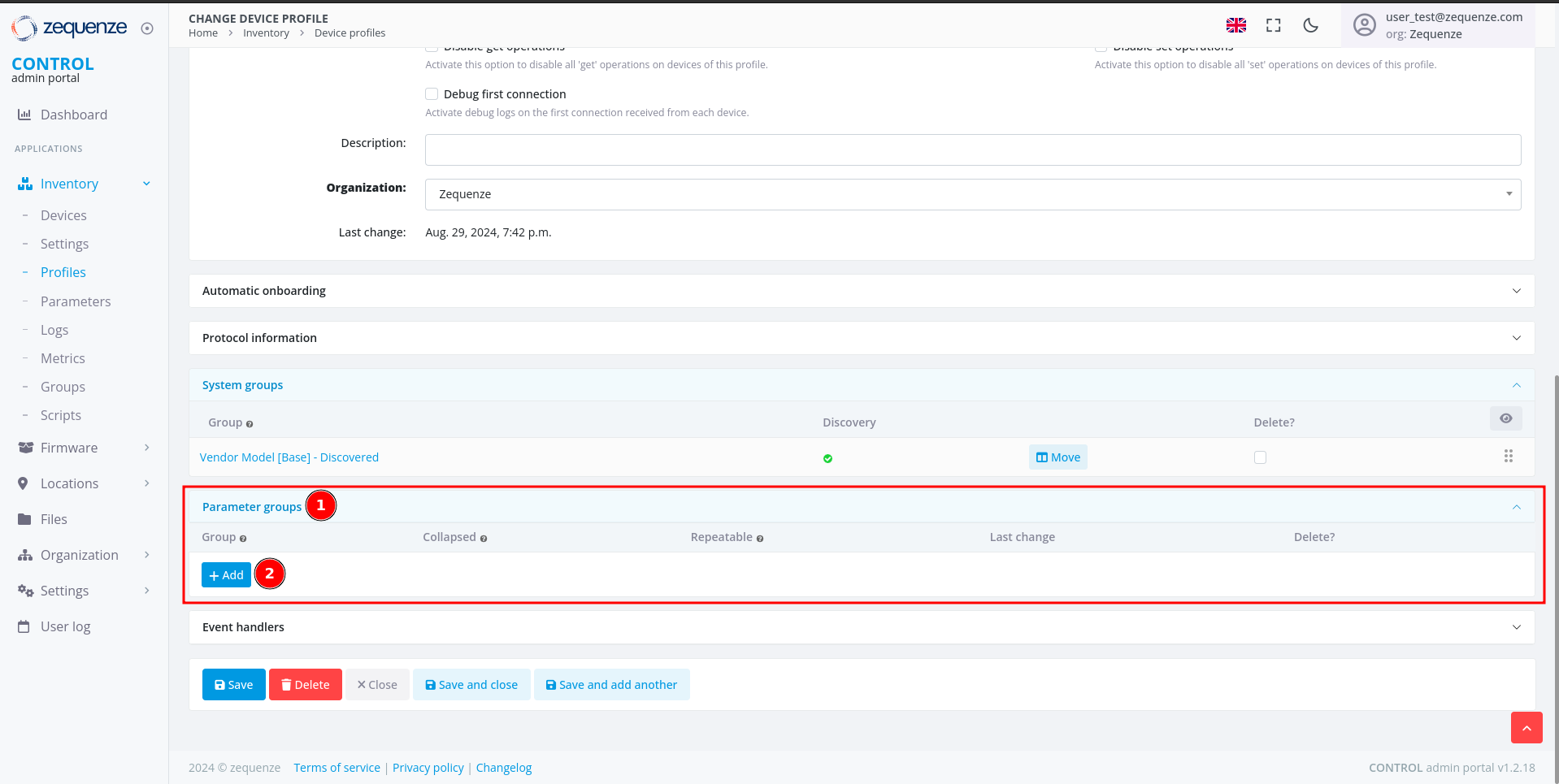 - Parameter groups - This section allows you to create and organize parameter groups