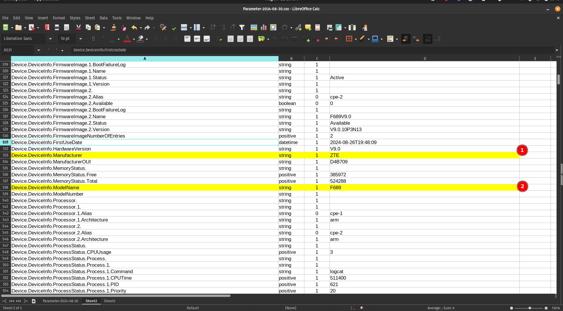 Begin by locating the parameters you want to group. For this example, we'll group four device information parameters: