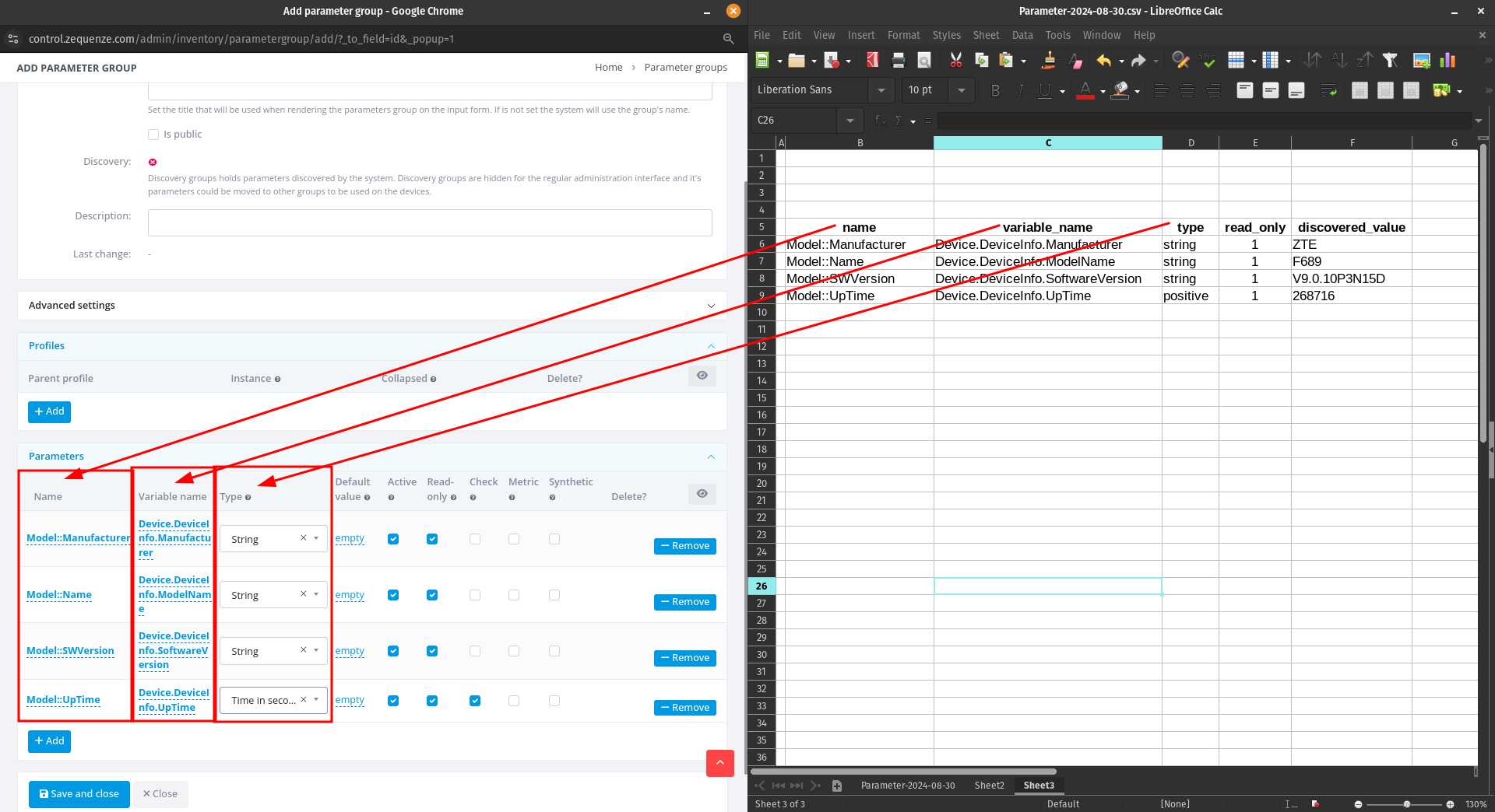 As you can see, there's now a clear correspondence between your spreadsheet and the CONTROL interface. When you've finished entering all parameters, click "Save and close".
