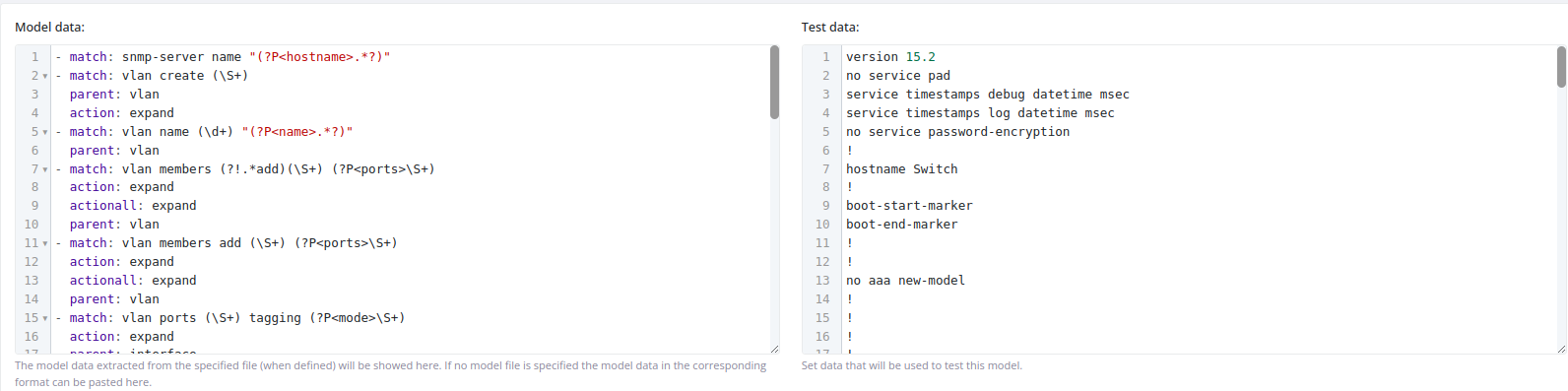 Using predefined rules: Leave the Model data field empty to automatically detect the block type and parse it using FLUX's built-in rules.