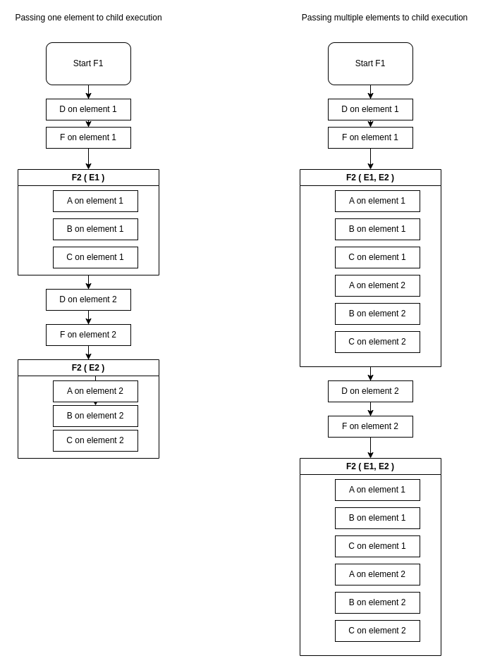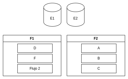 Given 2 elements (E1, E2), 2 flows (F1 & F2), and 5 tasks (A, B, C, D, F):