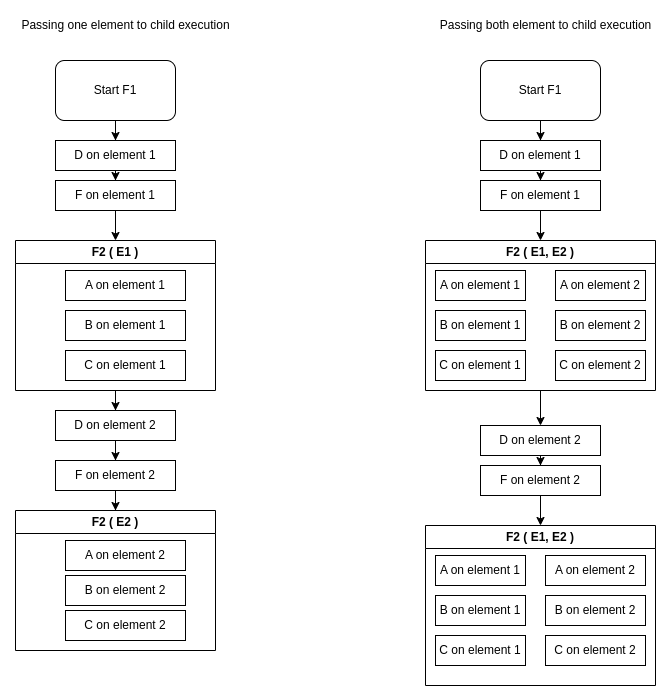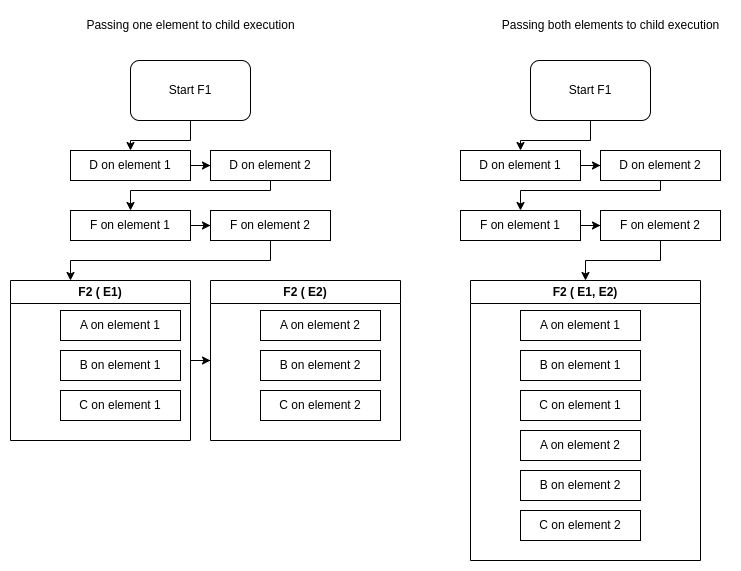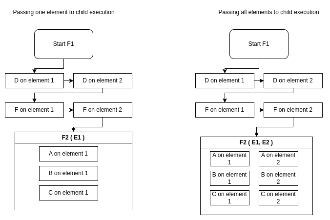 You can combine multiple flows of different execution modes (Serial and Parallel) to achieve more complex logic. When defining a flow execution script, you can pass specific elements to each child flow execution.