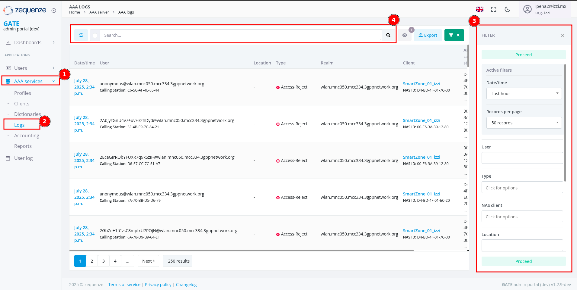 Este capítulo contiene la documentación específica para el cliente izzi sobre el uso de la plataforma GATE de Zequenze. La plataforma GATE proporciona servicios AAA (Authentication, Authorization, Accounting) para la gestión de accesos, autenticación de usuarios y administración de servicios RADIUS.