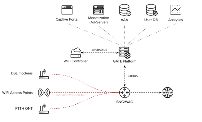 - Captive portal and AAA services for large-scale public WiFi deployments