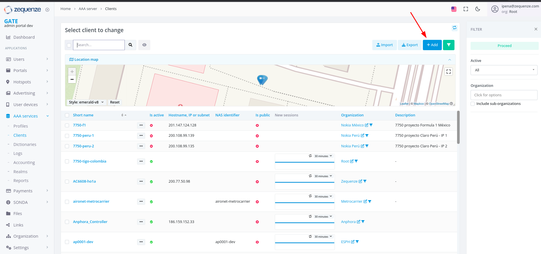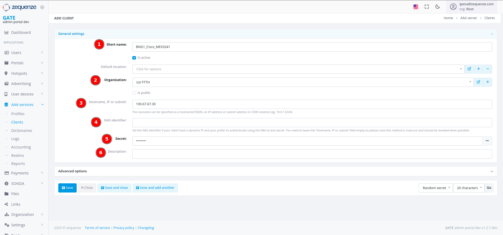 This guide walks you through the process of adding a new AAA client in the GATE portal (BNG, WAG, etc.).