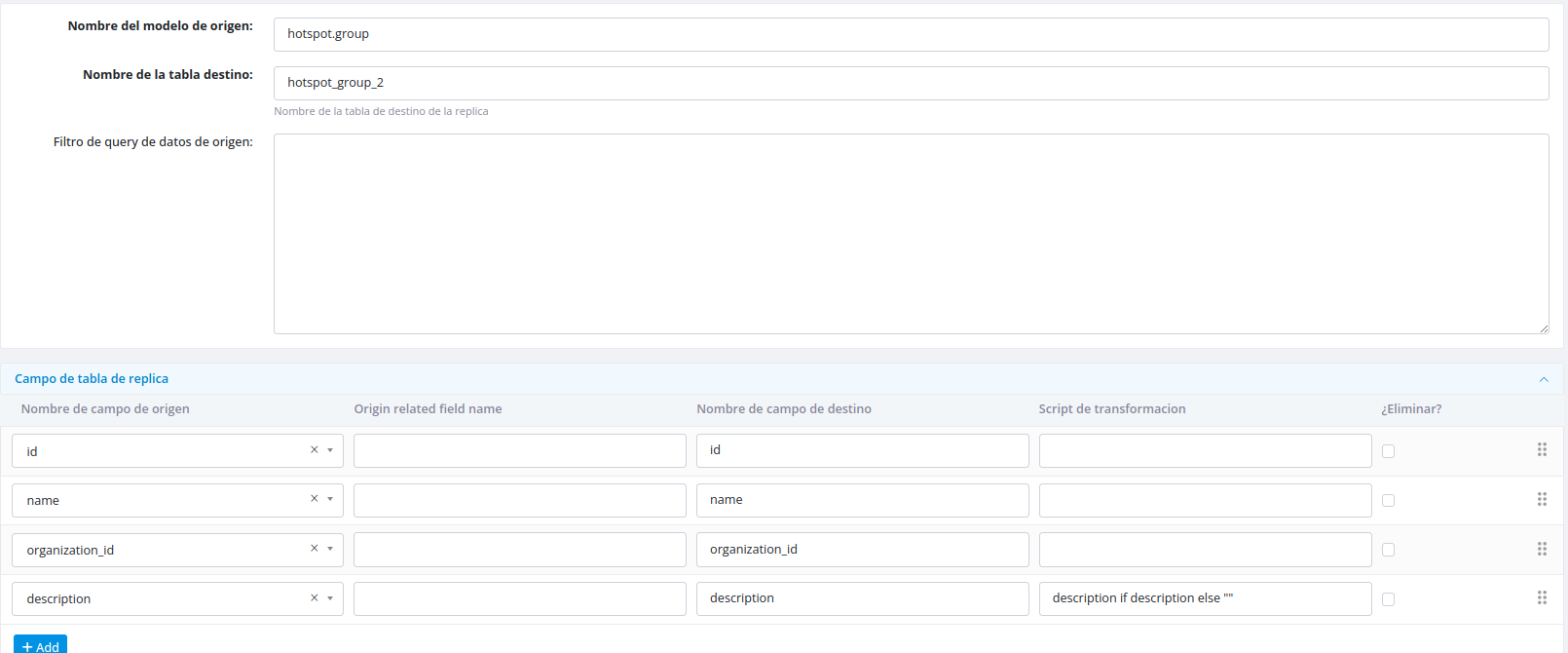 Transformation scripts allow you to modify field values using Python code before replication.