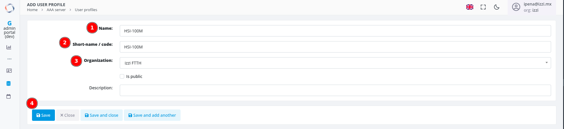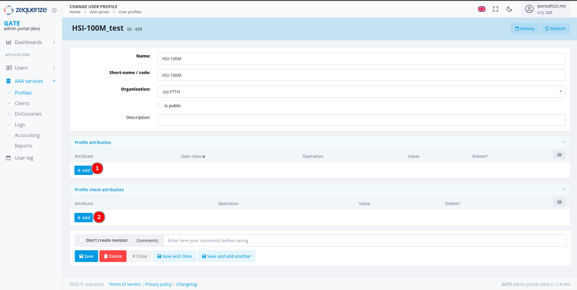- User profiles: Creación de perfiles con parámetros AVP o VSA RADIUS