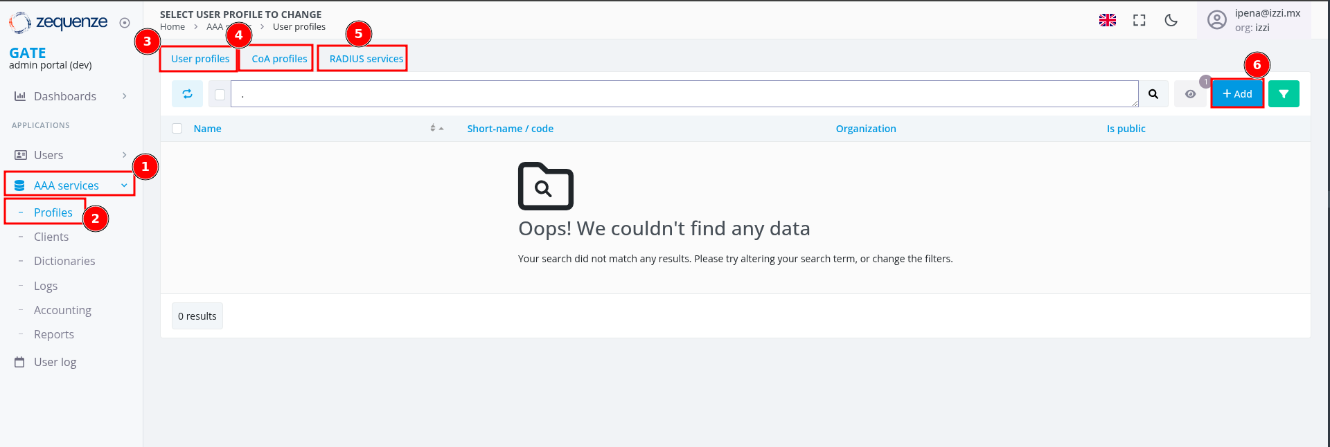 - CoA profiles: Configuración de mensajes CoA (Change of Authorization) o DM (Disconnect Message)
