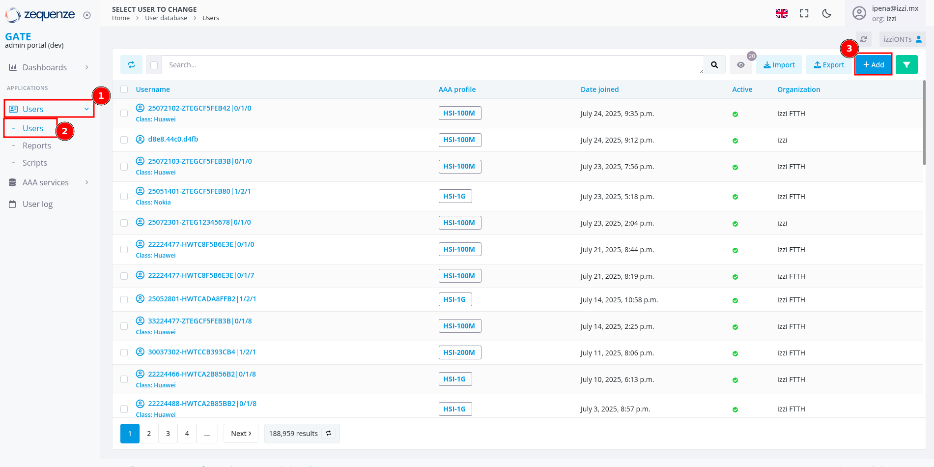 - "izzi FTTH": Para BNGs que autentican ONTs